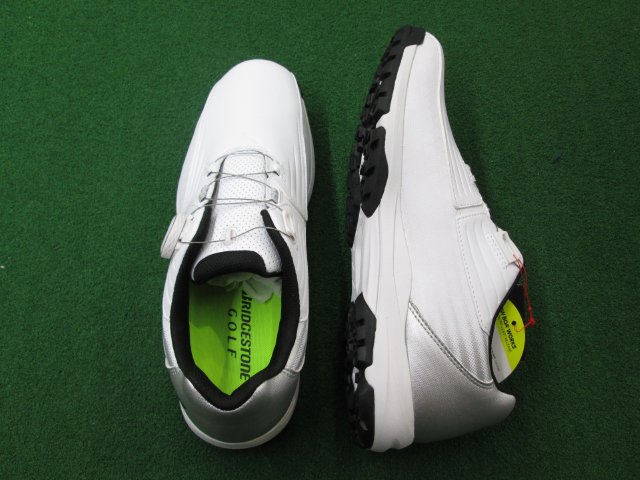 | ★【新品 ゴルフシューズ】ですが、店頭展示品ですので御理解の上ご注文お願い致します。ブリヂストン ゼロ・スパイクバイター ライト●カラー:ホワイト/シルバー※実際の色味と異なる場合があります。●サイズ:27.0cm●素材:甲材:人工皮革・底材:合成底(合成樹脂×合成ゴム)※宅急便発送です。裸足感覚の軽さを徹底追求し、前モデルより軽量化を実現した ブリヂストンゴルフ史上、最軽量のゴルフシューズです。